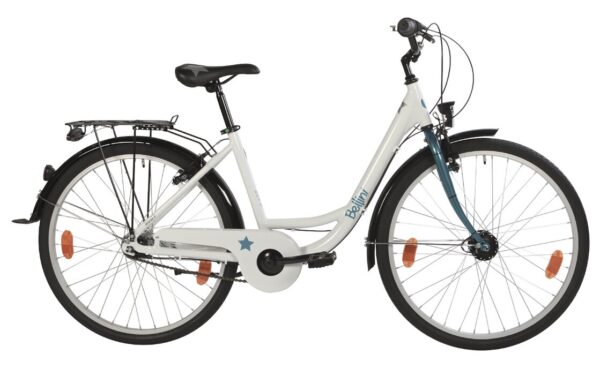 Bellini setzt beim Resi 7 voll auf Aluminium und konstruiert daraus einen schicken Tiefeinsteiger Rahmen. Dieser ist perfekt für den Stadtverkehr geeignet, da er sich durch die ausgewogene und entspannte Geomtrie sehr komfortabel fahren lässt. Aber auch die restliche Ausstattung ist durchdacht und passt zum Einsatzgebiet. So zum Beispiel die 26″ Laufräder. Dieses Citybike dürfte daher alle Mädchen glücklich machen, die einen zuverlässigen Begleiter für den Alltag suchen.